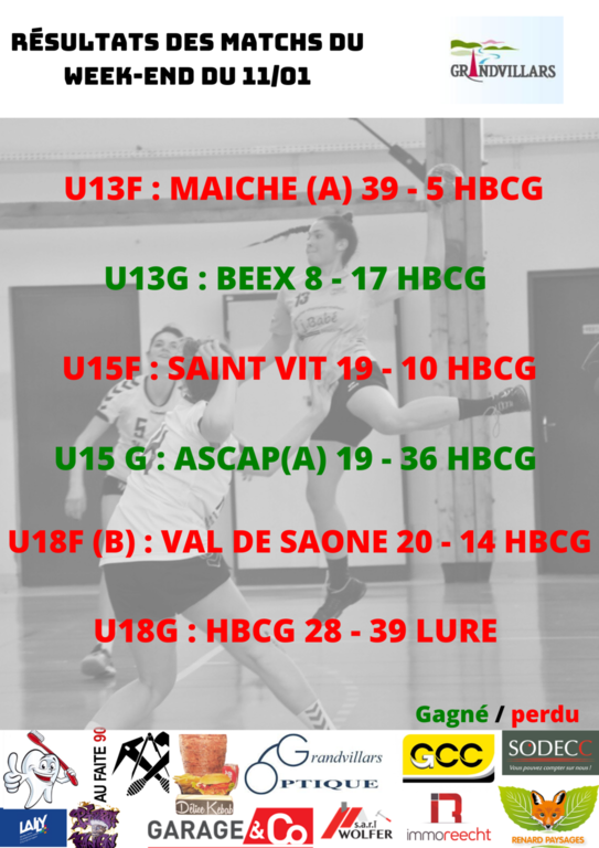 Résultats des matchs 11-01